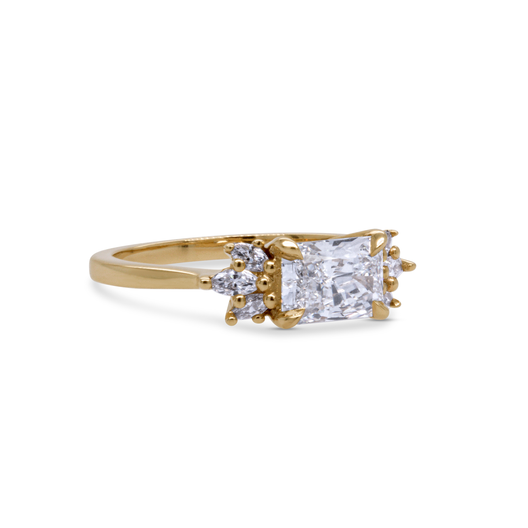 Centred by a striking 1.02ct lab-grown radiant cut diamond, Aether breaks the mould with its east-west orientation—a modern twist that turns heads without trying too hard. This isn't about following trends; it's about creating your own.